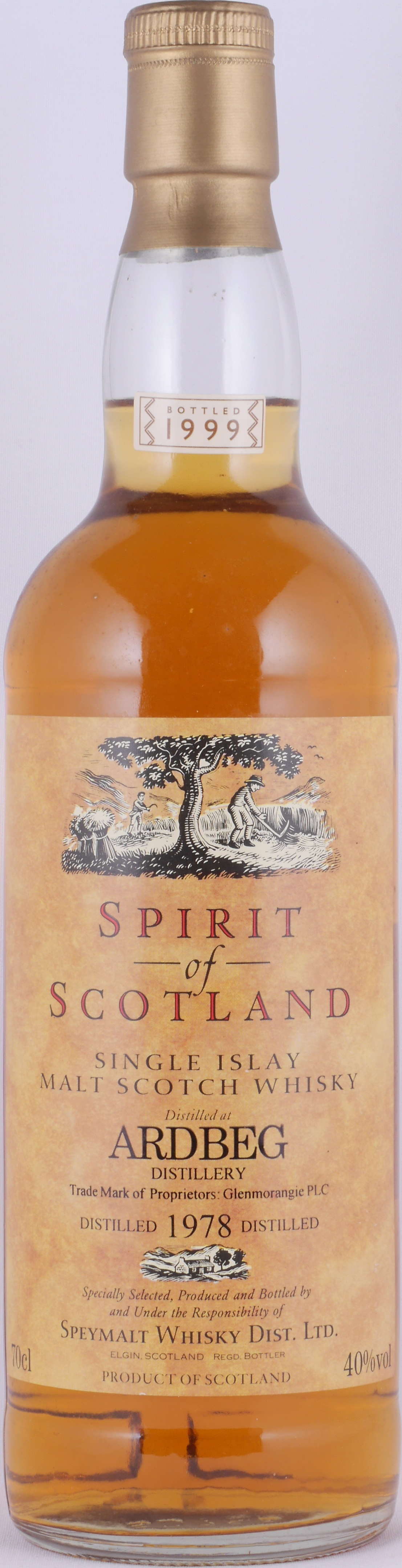 Ein seltener Vintage 1978 21 Jahre alter Ardbeg Islay Single Malt Scotch Whisky mit 40,0% Vol. aus der Spirit of Scotland Selection, der im Jahr 1999 in limitierter Auflage von Gordon und MacPhail abgefüllt wurde.