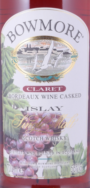 Der seltene und außergewöhnliche Bowmore Claret Bordeaux Wine Casked Islay Single Malt Whisky hat nach der Reifung für 12 Jahre in Bourbon Fässern anschließend für mehr als 2 Jahre ein Finish in ausgesuchten Bordeaux Rotwein Fässern erhalten und wurde im Jahr 1999 in Cask Strength mit 56,0% Vol. in einer Auflage von 12000 einzeln nummerierten Flaschen abgefüllt.