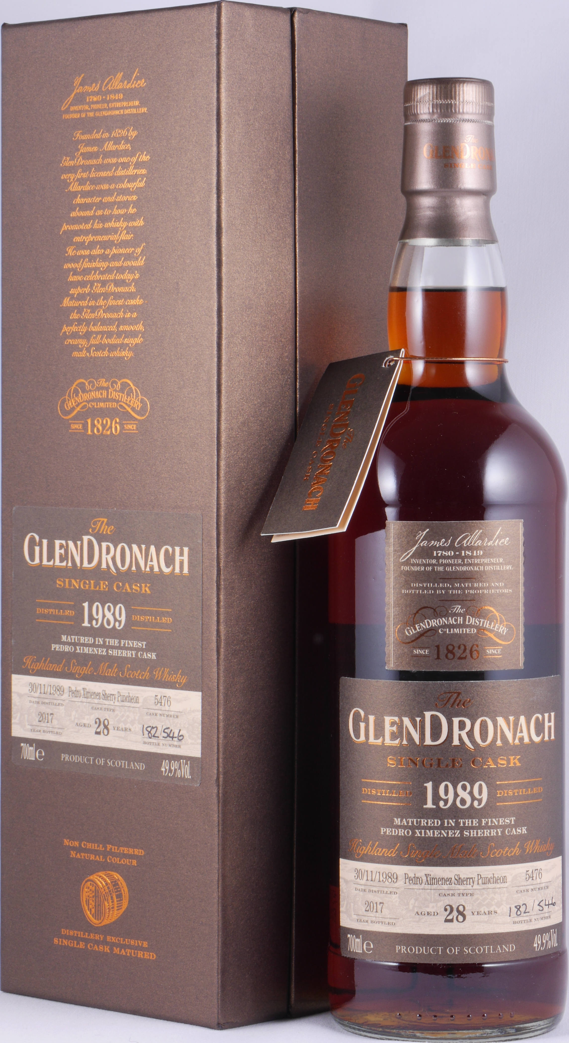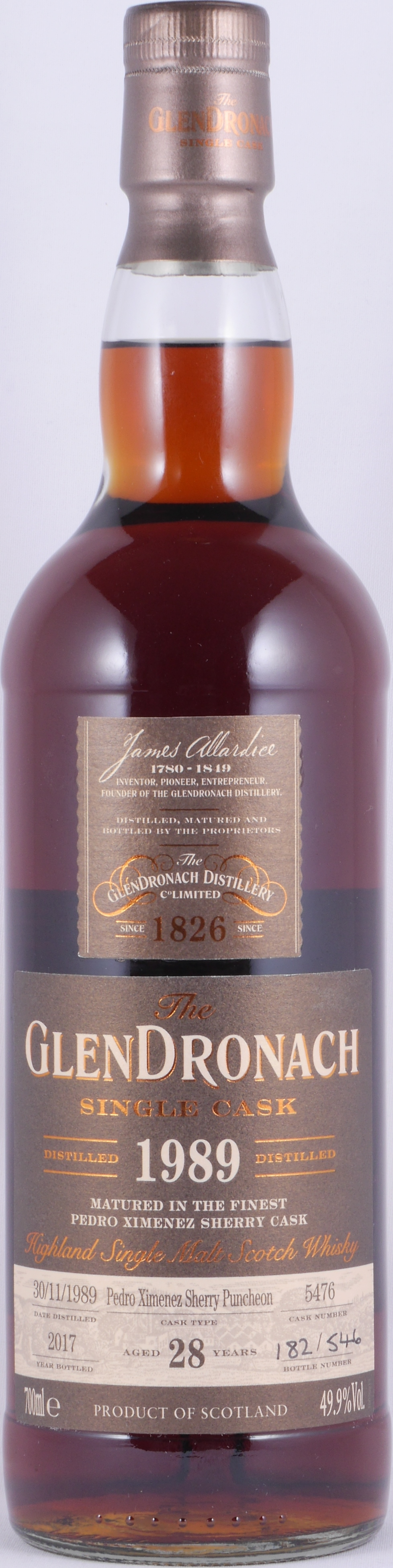 Glendronach 1989 28 Years Pedro Ximenez Sherry Puncheon Cask No. 5476 Highland Single Malt Scotch Whisky Cask Strength 49,9% Vol. - eine von 546 Flaschen eines großartigen Glendronach Highland Single Malt!