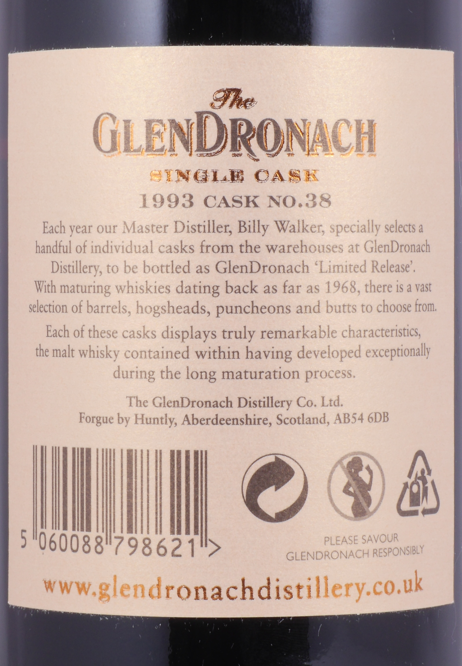 - Lebensmittelhersteller/Importeur: The Glendronach Distillery Co. Ltd., Forgue by Huntly, Aberdeenshire AB54 6DB, Scotland