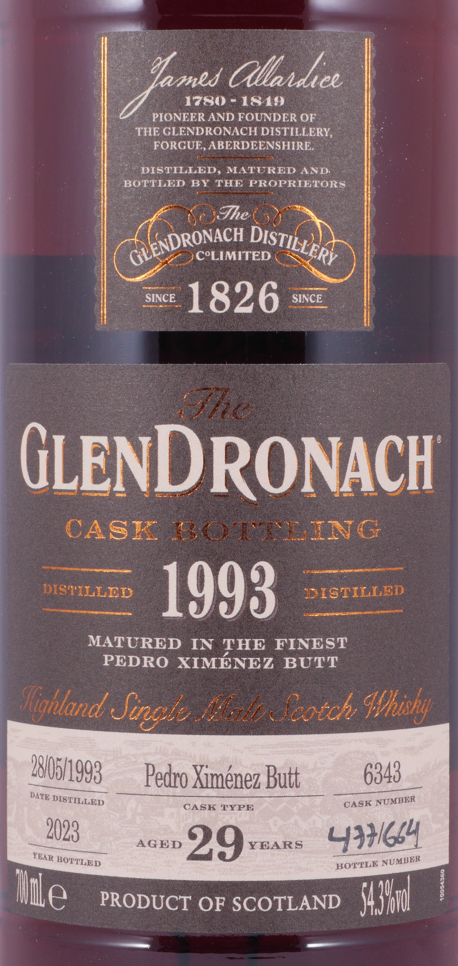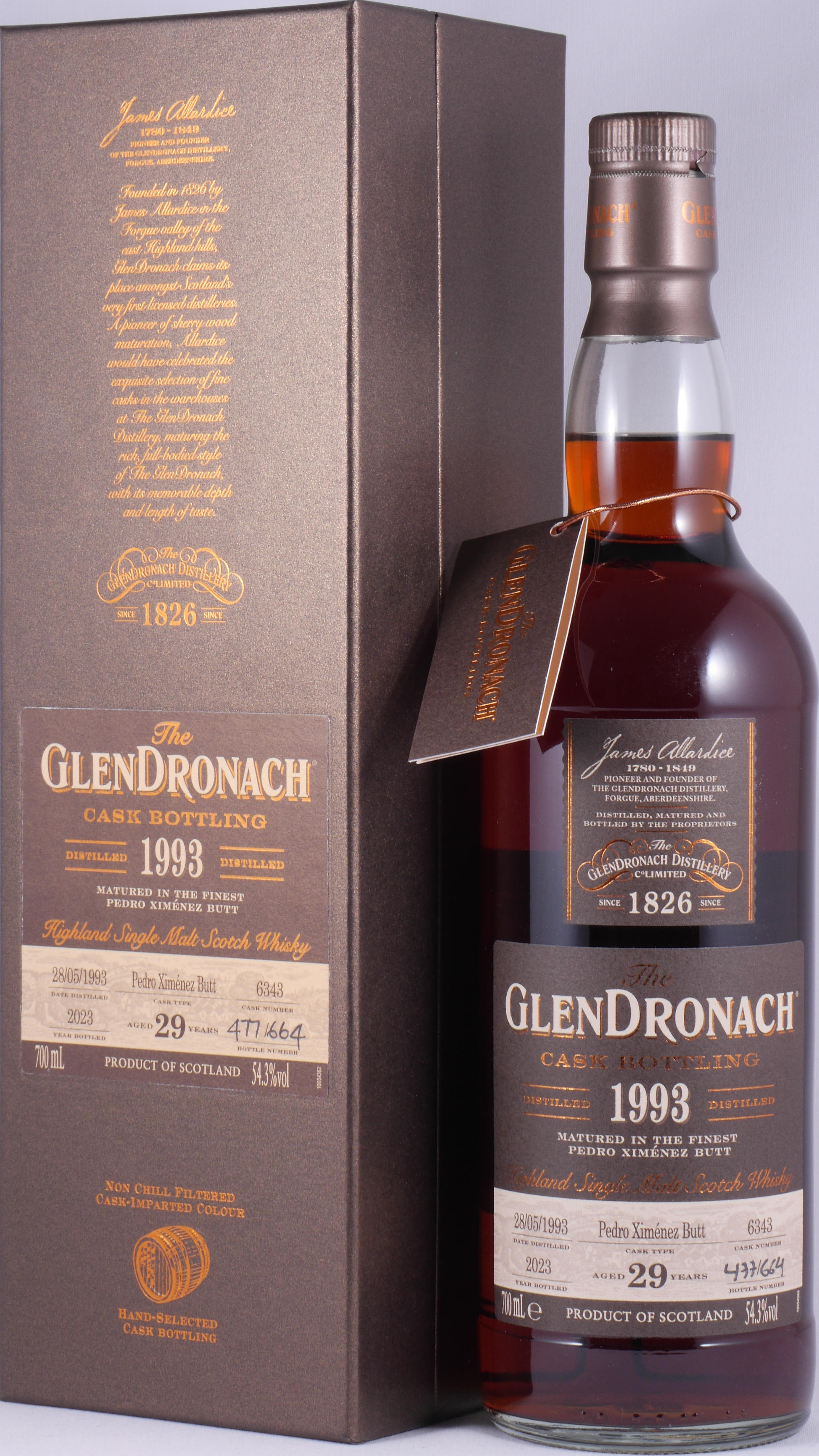 Glendronach 1993 29 Years Pedro Ximenez Sherry Butt No. 6343 Highland Single Malt Scotch Whisky Cask Strength 54,3% Vol. - eine von nur 664 Flaschen eines wundervollen Glendronach Highland Single Malt!