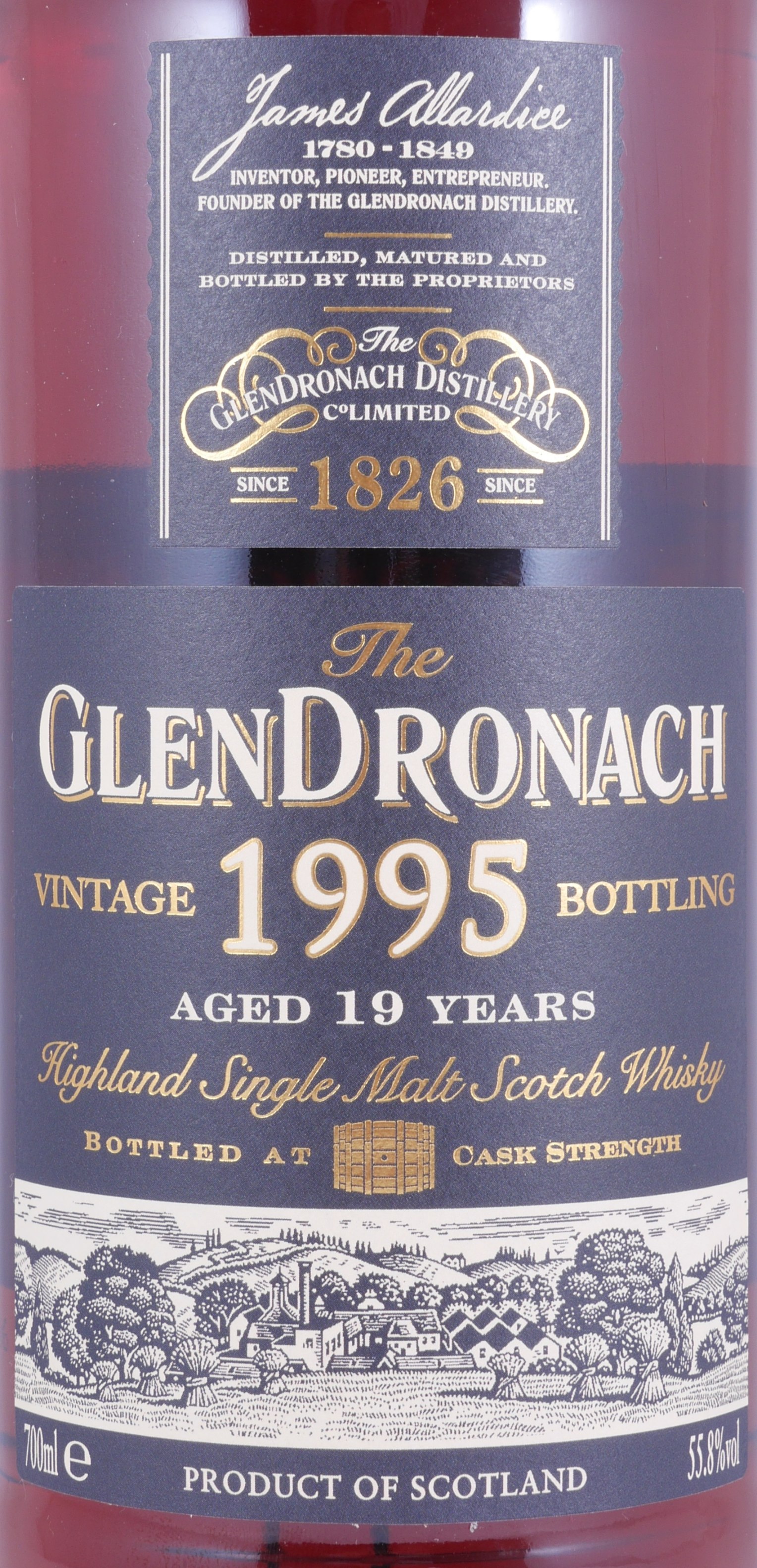 Dieser seltene Vintage 1995 19 Jahre alter Glendronach Highland Single Malt Whisky wurde im Jahr 1995 destilliert und durfte 19 Jahre in feinsten Pedro Ximenez Sherry Casks bis zur seiner Abfüllung in Cask Strength mit 55,8% Vol. am 6. November 2014 reifen.