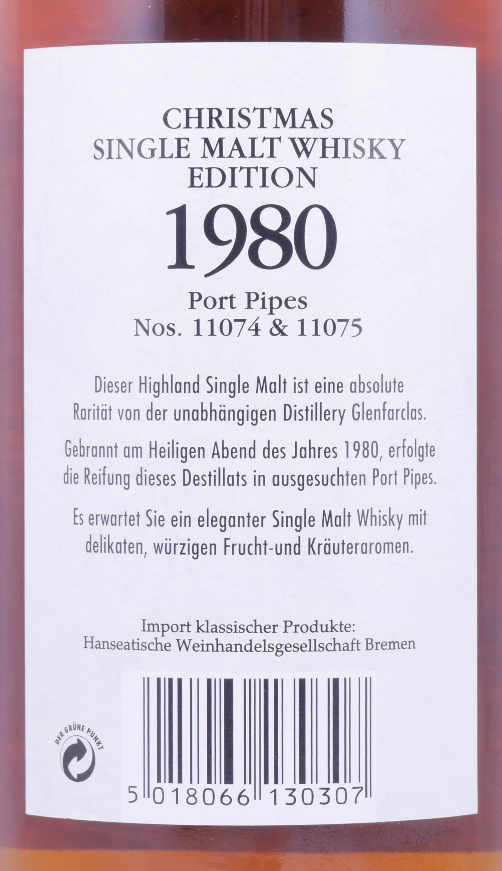 Glenfarclas 1980 32 Years Port Pipe Cask No. 11074 + 11075 Christmas Edition Highland Single Malt Scotch Whisky Cask Strength 45,7% Vol. - eine von 792 Flaschen eines outstanding Glenfarclas Highland Single Malt!