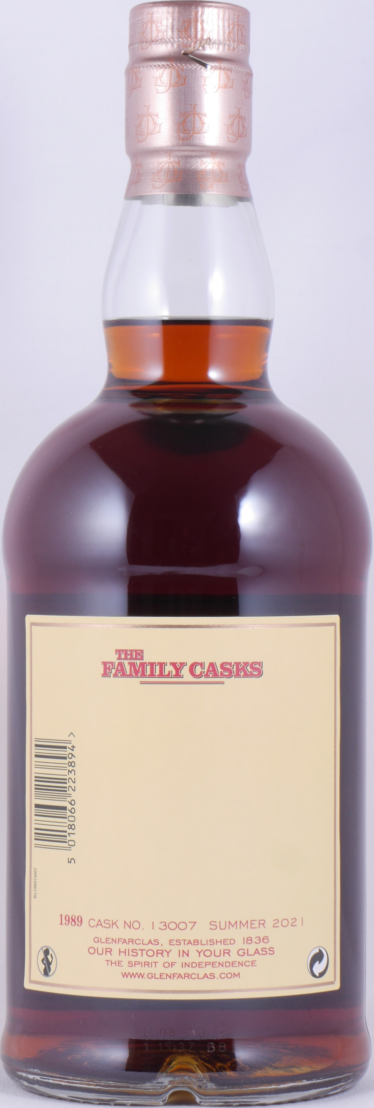 Glenfarclas 1989 31 Years Family Casks First Fill Sherry Butt No. 13007 Highland Single Malt Scotch Whisky Cask Strength 51,9% Vol. - eine von 606 Flaschen eines erstklassigen Glenfarclas Highland Single Malt!