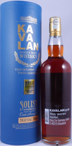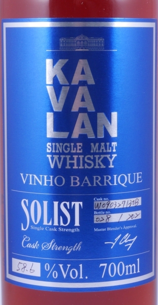 Kavalan Solist 2009 6 Years Vinho Barrique Cask No. W090327130B Release 2015 Taiwan Single Malt Whisky Cask Strength 58,6% Vol. - eine von 202 Flaschen eines wundervollen Taiwan Single Malt aus der preisgekrönten King Car Destillerie!