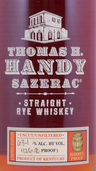 Sazerac Rye Whiskey symbolisiert die Tradition und Geschichte von New Orleans. Die Geschichte des Rye Whiskey geht zurück bis ins Jahr 1800, um die Zeit, als die ersten Saloons und Kaffeehäuser entlang der Straßen von New Orleans entstanden. Dies ist der legändere Whiskey, mit dem alles begann und die limitierte jährliche Ausgabe des berühmten Rye Whiskey aus der legendären Buffalo Trace Destillerie. Mega würzig und völlig kompromisslos, ist dies ein Muss für Rye-Fans. Er ändert sich ein wenig von Charge zu Charge, ist aber immer atemberaubend und hat hierfür seit dem Jahr 2000 unzählige Auszeichnungen erhalten, der Sazerac 18 Years Old (Fall 2008) wurde im Jahr 2010 von Jim Murray als World Whiskey of the Year prämiert und zählt wie die raren Abfüllungen von Old Rip Van Winkle mit zu den besten Whiskeys dieser Welt. Die Release 2016 des Straight Rye Whiskeys wurde mit 135 proof im Jahr 2010 in White Oak Fässer abgefüllt, nach Jahren der Alterung erhielt der Whisky 126.2 proof und wurde in einer limitierten Auflage unfiltriert und ohne Zusatz von Farbstoffen in Cask Strenght mit 63,1% Vol. abgefüllt. Die Glasflasche für Thomas H. Handy Sazerac Straight Rye wurde entwickelt und ausgewählt, um die dunkle und kräftige Farbe dieses besonderen Rye Whiskeys zu präsentieren. Das Rückenetikett bietet eine vollständige Produktgeschichte und Beschreibung. Jede Flasche wurde von Hand abgefüllt und etikettiert um die höchste Verarbeitungsqualität und Einzigartigkeit zu gewährleisten.