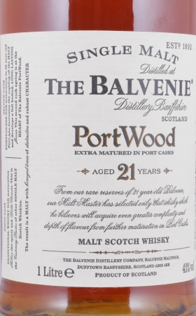 A multi-award winning premium 21 years Balvenie Port Wood Highland Single Malt Scotch whisky from the 1990s and rare old bottling from Balvenie s Port Wood Edition - a must for connoisseurs, discerning whisky collectors and lovers of exclusive old Scotch whiskies!
