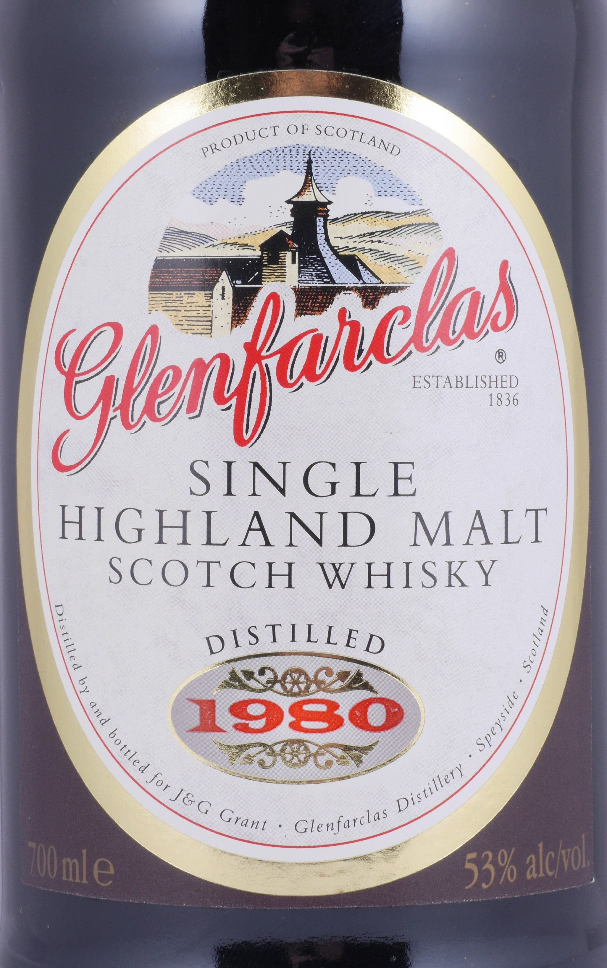 An extraordinary vintage 1980 21 years Glenfarclas Highland single malt Scotch whisky matured in a dark Oloroso sherry cask, which boasts exceptional quality and immense sherry power - absolutely excellent and a special recommendation for connoisseurs, discerning whisky collectors and lovers of fine old Scotch whiskies.