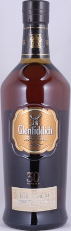 This special 30 years Glenfiddich Speyside Single Malt Scotch whisky with individually numbered bottles and the cask selection number is now one of Glenfiddich's rarest and, at 30 years old, particularly old bottlings and rare masterpieces, has received several awards for its outstanding quality and was only available from selected retailers.
