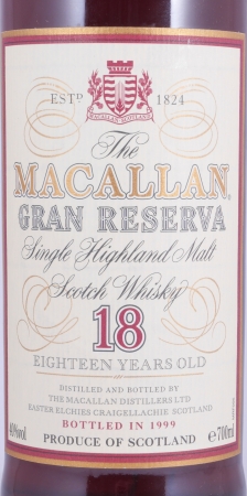 The vintage 1980 18 years Macallan Gran Reserva Highland Single Malt Scotch Whisky was bottled in the year 1999 in a limited edition of around 1.100 bottles at 40.0% vol. and is today one of the most sought-after old bottlings from Macallan among investors, the discerning whisky-collectors and enthusiasts of exclusive old style Scotch whiskies!