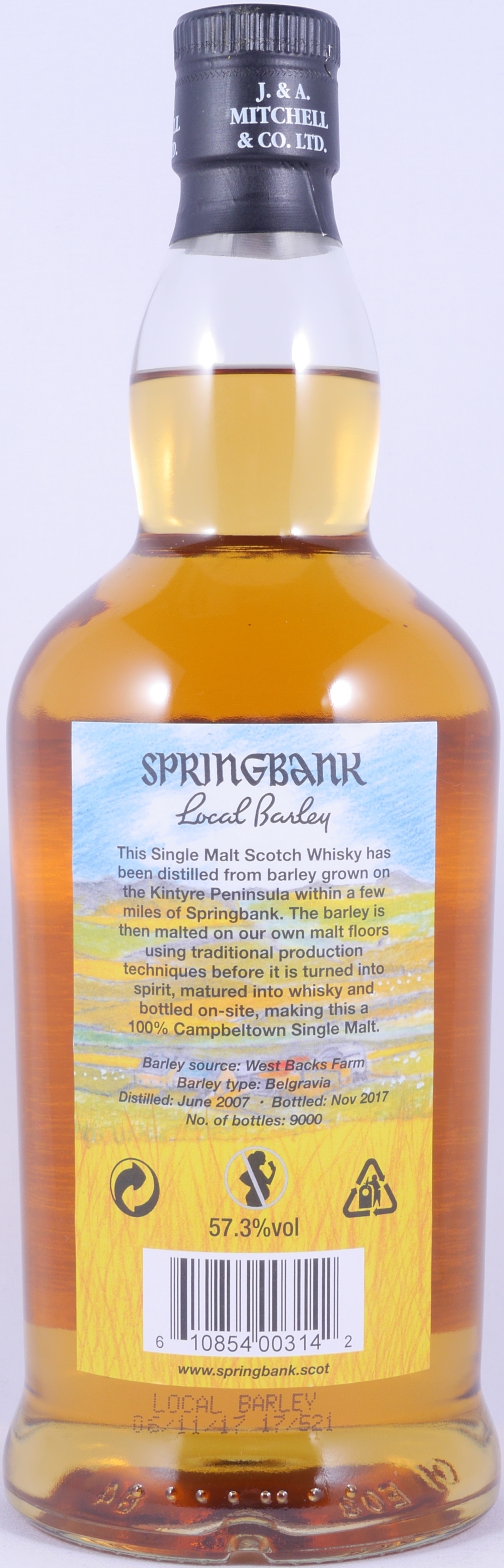 Springbank 2007 10 Years Local Barley Release 2017 Campbeltown Single Malt Scotch Whisky Cask Strength 57.3% Vol. - one of 9.000 bottles from the famous Springbank Local-Barley series of a great Springbank Campbeltown Single Malt!