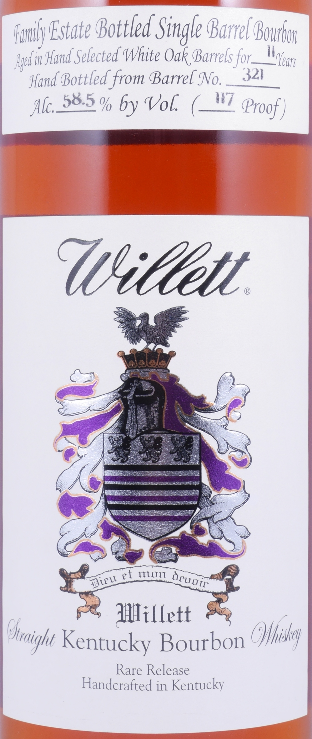 Willett 11 Years Single Barrel No. 321 Gold Wax Sealed Family Estate Rare Release Kentucky Straight Bourbon Whiskey 58.5% Vol. bottled exclusively for the 50th Anniversary of Holiday Wine Cellars - very rare bottling of a stunning Willett Single Barrel Kentucky Straight Bourbon Whiskey!